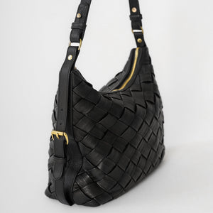 The Selena Woven Bag by TAH, is where artistry meets everyday elegance. Handwoven from premium full-grain leather and finished with solid brass hardware, this woven leather tote is designed to move effortlessly with you. A full zipper closure and adjustable shoulder strap offer versatile styling, while side buckle straps allow you to convert the silhouette into a relaxed, slouchy design. Thoughtfully constructed with four interior pockets and a secure zipper compartment, the Selena balances refined craftsmanship with quiet luxury.